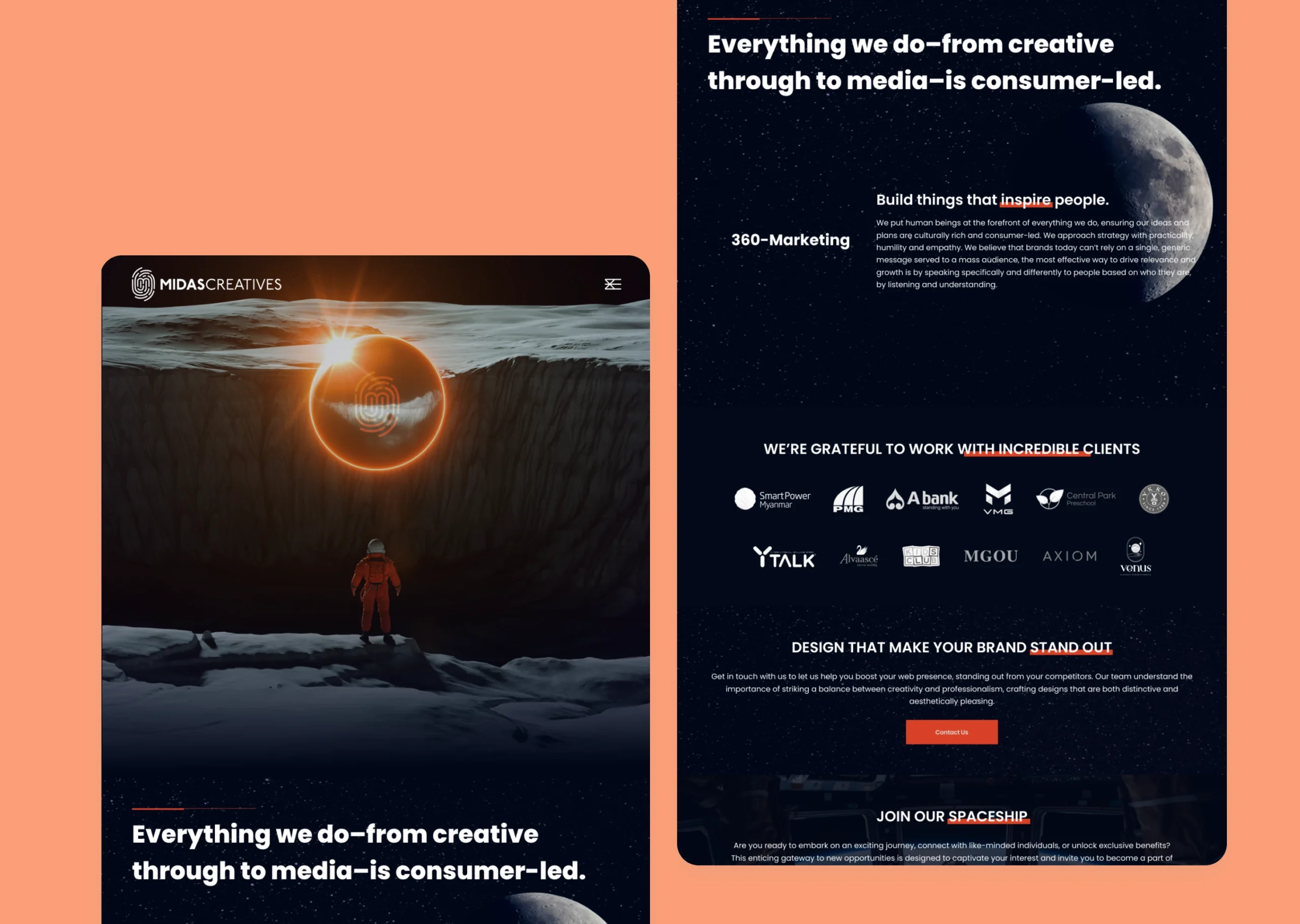 Our mission was to deliver a visually powerful site—one that showcased Midas Creative’s innovative edge through clean lines, subtle animations, and a refined use of dark tones. At the same time, we focused on ensuring fast load times and smooth interactions, so the experience felt as polished as the designs themselves.